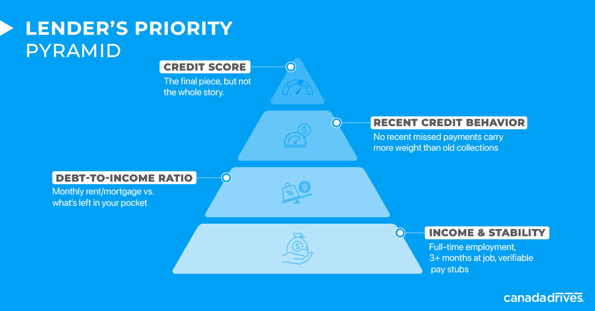 Lender approval factors for bad credit car loans in Canada.