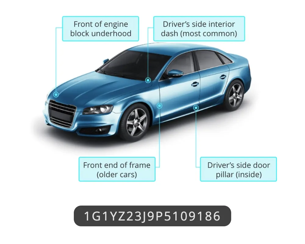 Most vehicles have the VIN displayed in multiple places, such as on the driver’s side dashboard and on the driver’s side door jamb. The image above highlights common VIN locations. You can also find the VIN on documents like your registration or insurance, or even in your car’s owner’s manual. Once you have this number, you can perform a VIN recall check via your manufacturer’s website or database to see if your specific vehicle is subject to any recalls.